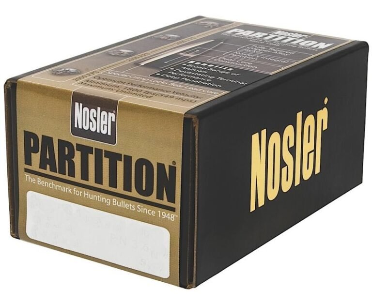 Every Partition bullet in the Nosler line is engineered with an optimum length, weight and ogive design for maximum in-flight and terminal performance. The fully tapered copper-alloy jacket ruptures instantly at the thin mouth, yet the gradual thickening along the bullet’s axis controls expansion and curls the jacket uniformly outward at high and low velocities. Nosler’s integral partition supports the expanded mushroom and retains the rear lead alloy core. Enclosed rear core retains more than half the original bullet weight for deep penetration. Special crimp locks add strength to resist deformation under the pressure of heavy magnums.