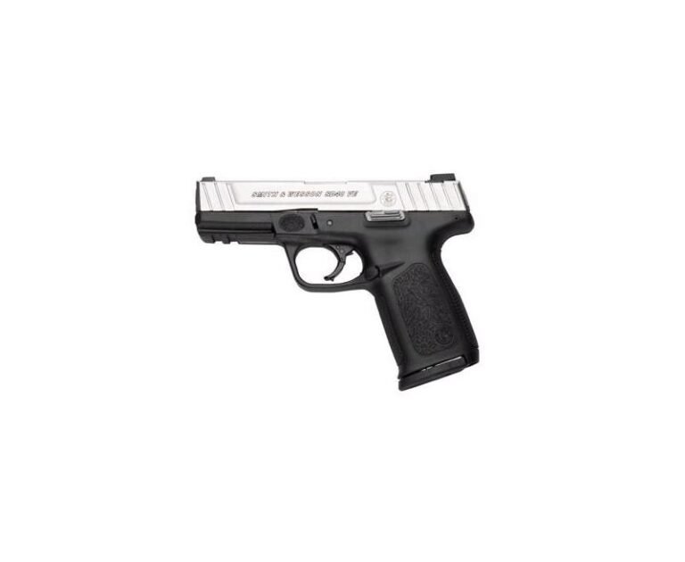 Smith and Wesson SD9VE *CA*123903 9mm 4 10R The Smith and Wesson SD40 VE is a handy-sized, good looking 9 mm with top of the line modern features. This is a high-performance weapon, designed to provide 10 rounds whenever you need them, fast and accurate. Like all Smith & Wesson pistols, it’s a precision weapon. If you’re looking for efficiency and dependability, this pistol is a great choice. Capacity: 10 1 Rounds Action: Striker Fired Action Barrel Length: 4 / 10.2 cm Front Sight: White Dot Rear Sight: Fixed 2-Dot Overall Length: 7.2 / 18.3 cm Width: 1.29 / 3.3 cm Weight: 22.7 oz. / 643.0 g Grip: Textured Polymer Frame Material: Polymer Slide Material: Stainless Steel Barrel Material: Stainless Steel Finish: Two-Tone SDT – Self Defense Trigger for Optimal, Consistent Pull First Round to Last Dovetailed, White Dot Sights Standard, Picatinny-style Rail Ergonomic, Textured Grip Textured Finger Locator Aggressive Front and Back Strap Texturing Distinctive Two-Tone Finish Front and Rear Serrations Magazines for current