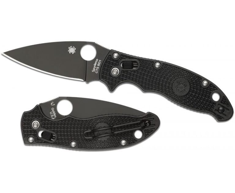 Weighing in at a scant three ounces, it features a full-flat-ground CTS BD1 stainless steel blade with Spyderco’s signature Trademark Round Hole for easy, ambidextrous, one-handed opening. Cloaked in its durable DLC coating, the blade is supported by a high-strength Ball Bearing Lock mechanism encased within a precision-machined steel insert in the handle. To ensure a secure grip in even the most demanding circumstances, the injection-molded FRCP handle has a high-traction Bi-Directional Texture pattern. Fully ambidextrous, this knife also sports a reversible wire clip that supports left or right-side tip-up carry.
